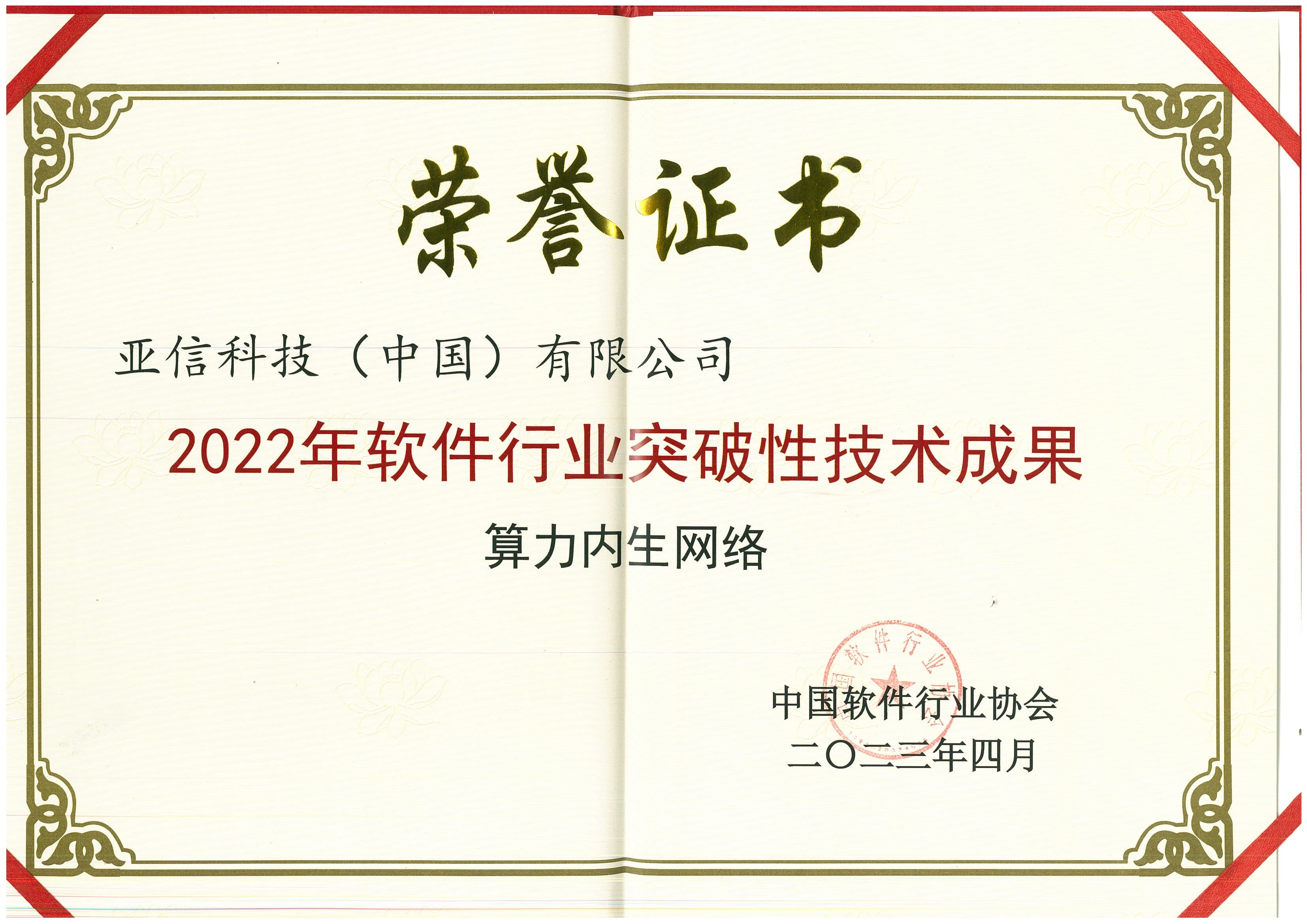 2023年4月 304am永利集团算力内生网络荣获“2022年软件行业突破性技术成果”
