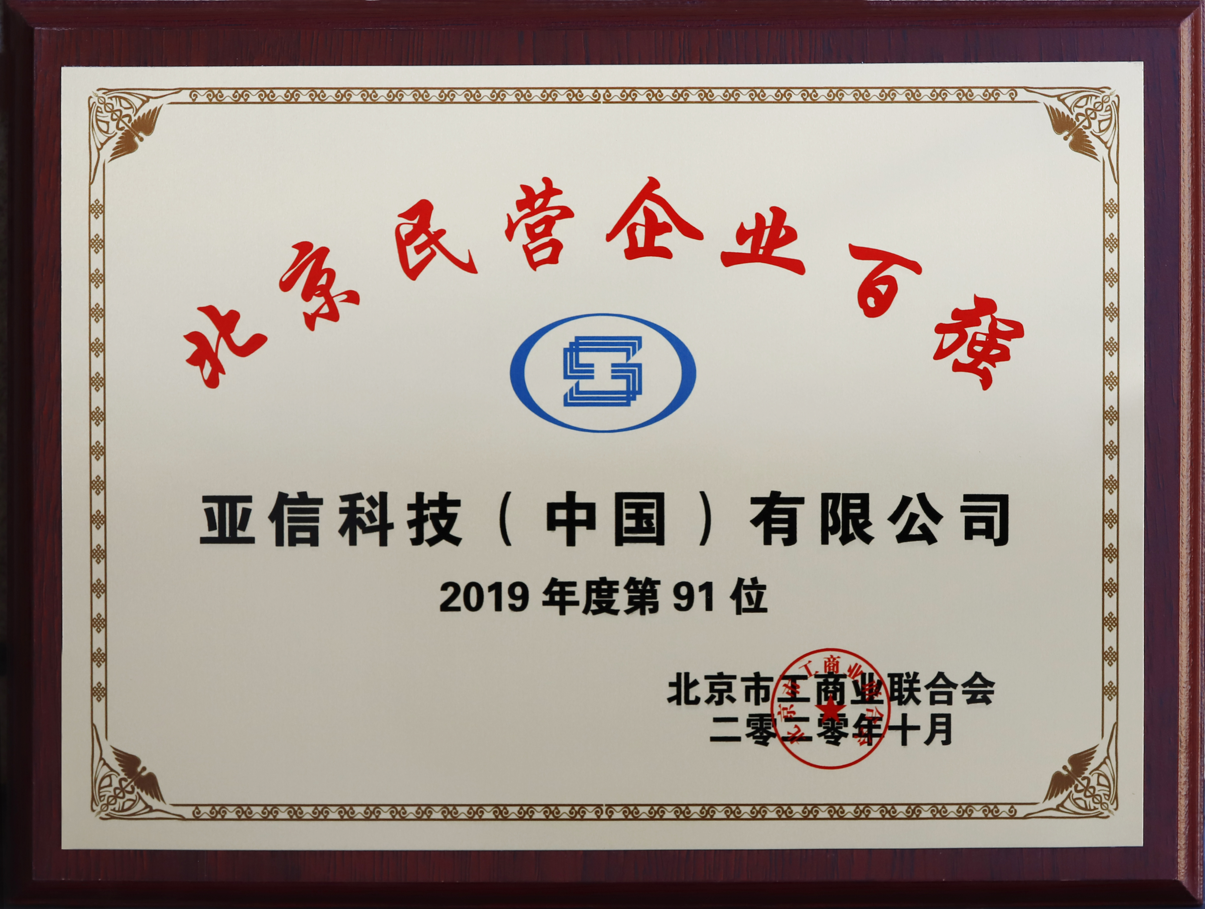 2019年11月 304am永利集团荣获“北京民营企业百强”